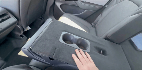 后排的中央杯架被设计在了中间座位的后侧,中间座椅整体充当为“扶手 杯架”。
