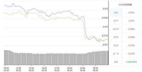 根据欧易OKX消息,截止2023年5月24号,DOGE狗狗币的市场行情美元价格数据内容为