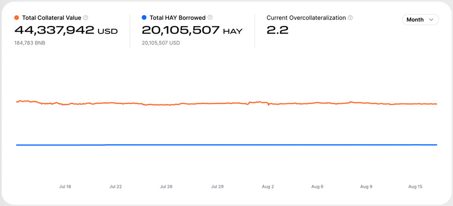 当前Helio Protocol抵押品价值约4,433万美元,而$HAY市值价值约2,010万美元,截稿时间超额抵押率达220%,显示超额资产仍充足、安全。