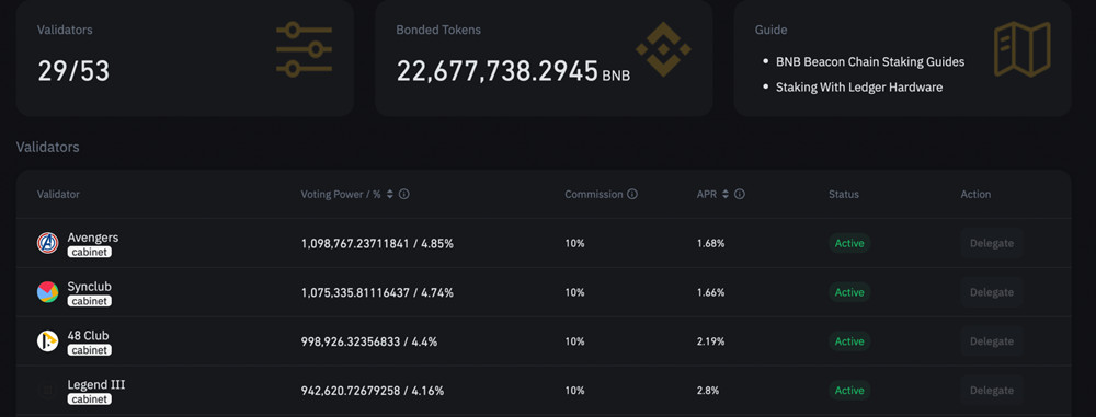 snBNB(Synclub上质押BNB后之凭证代币)