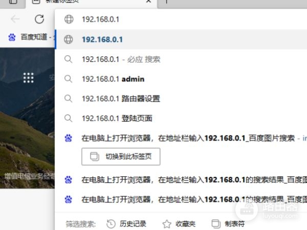 4、在电脑上打开浏览器,在地址栏输入192.168.0.1,然后按回车键。