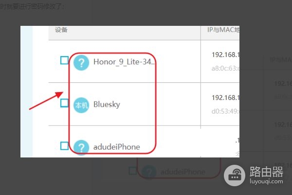 4、然后即可看到目前连接网络的设备数量以及对应的名称,如果其中有陌生设备,那就是诶蹭网无疑了,这时就要进行密码修改了。