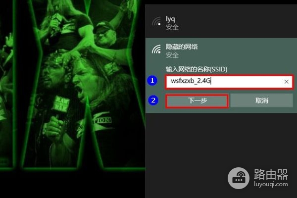 4、在【输入网络的名称(SSID)】文本框中输入路由器无线网络的名字,然后点击【下一步】。