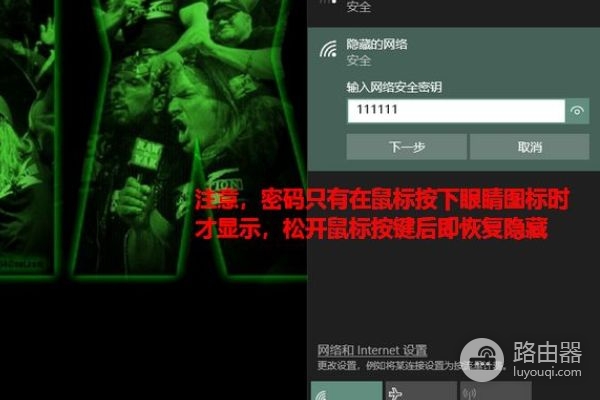 5、在弹出的【网络安全密钥】文本框中输入路由器无线信号的密码,为了防止输入错误,可以点击右侧的眼睛图标来显示输入的密码。