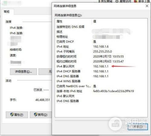 无线路由器没有提供无线网络解决方法:3. 双击以太网连接图标,在详细信息里查看路由器的IP地址(即以太网IP配置的网关地址)。