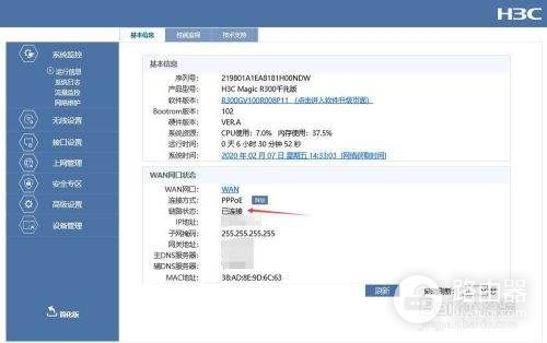 无线路由器正常提供无线网络连接但无法上互联网:6. 点击路由器管理页面的系统监控下的运行信息,查看WAN网口状态的链路状态是否是“已连接”。