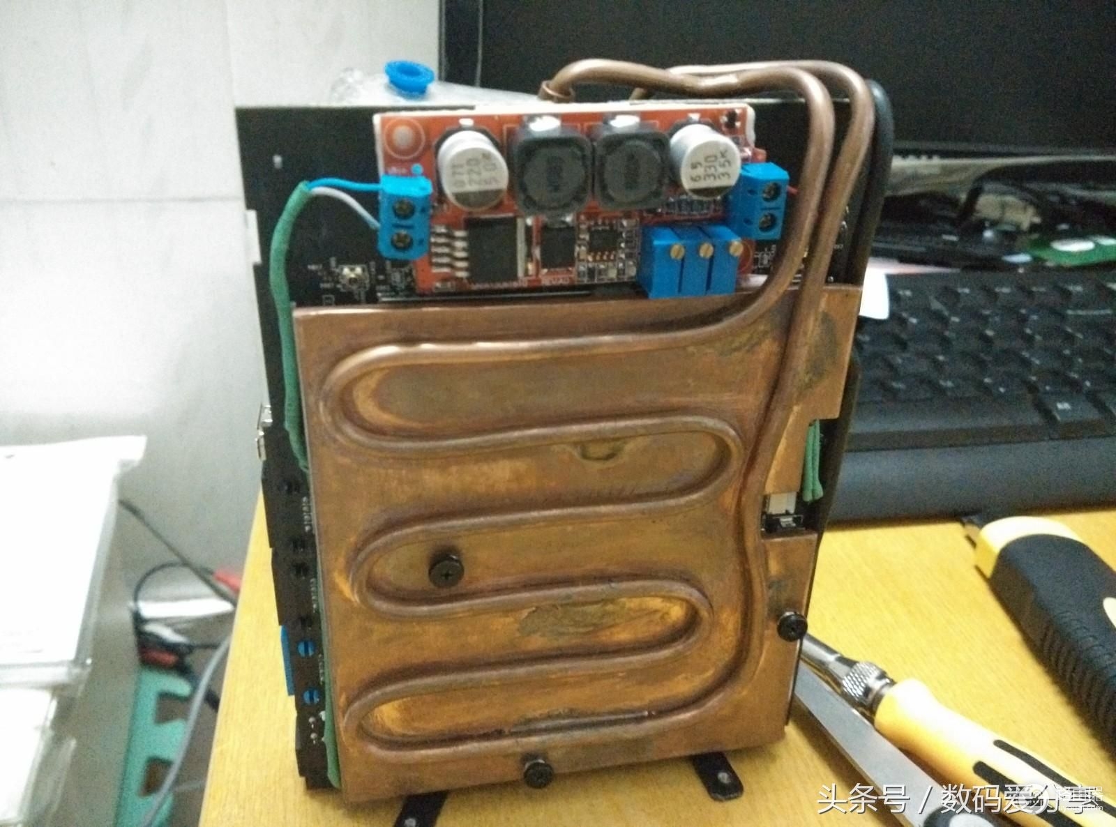 还有就是不知从哪找来的一个M字形的导热铜管,直接被他和路由器硬盘主板焊在了一起,还把导热管上的两个接口改成了气动接口。由于这个制作过程有些复杂,光看他的文字介绍也能难理解,所以笔者直接省略了他的整个制作过程,一起来看看成品吧。