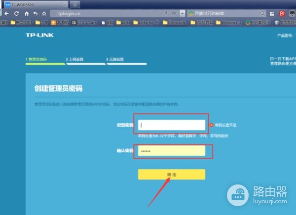 5、在设置页面输入新密码进行密码设置,设置密码后点击下方的确定按钮。
