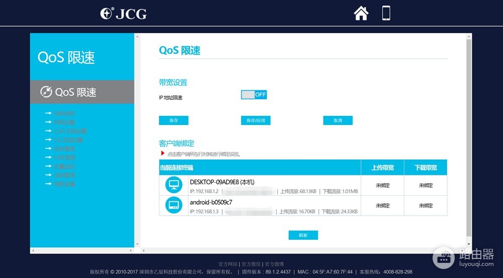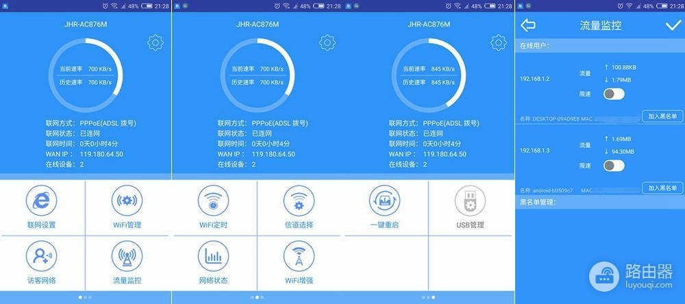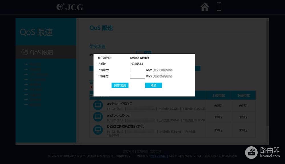 手机APP,基本和PC端一致,不过用手机会更加方便一些;同样可以实现流量监控和限速设置。