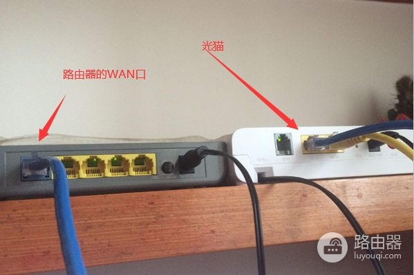 13、此时两个路由器均设置完毕了,保持第一个路由器与光猫的接线不动,使用网线插入第一个路由器的LAN口,另外一头接入第二个路由器的WAN口就完成相关连线了。