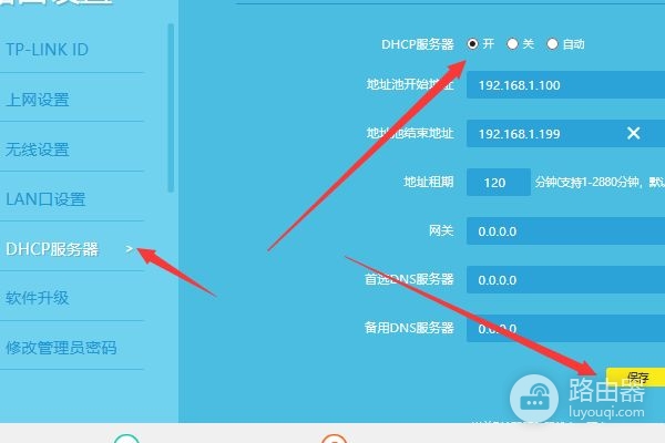 8、再点击DHCP服务器,勾选开启DHCP功能点击保存。