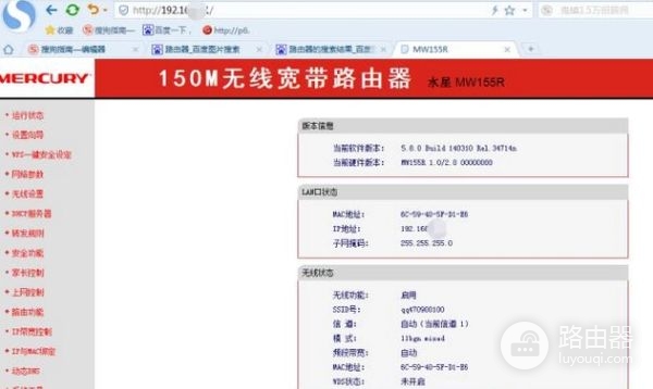 14、没有设置过的路由器大家都可以看到LAN口设置IP是192.168.1.1,我们要把它给换成其他的,如果不换的话IP冲突上不了网的。