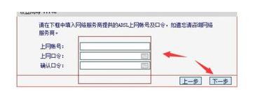 8、会弹出上网账号和上网口令。输入之后点击下一步按操作完成即可。