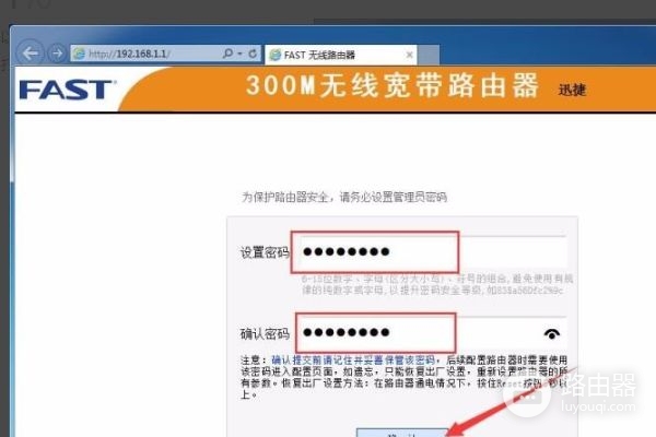1、以新的FAST无线路由器30OM的型号为例,打开管理IP地址,设置一下管理密码。