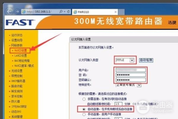 3、进入网络参数中的WAN设置,主要是对用户和密码进行设定。