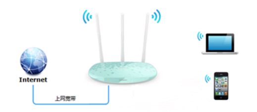 2、宽带网络总线连接到无线路由器的WAN口,无线路由器连接上电源适配器。