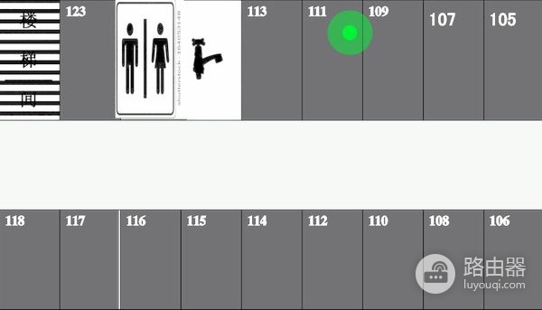 我目前还住在大学宿舍里,路由器放在图中绿点的位置,我一直在为上洗手间时没有一个好的Wi-Fi信号而发愁,上洗手间时手机和路由器之间隔了三堵墙,这就对路由器的穿墙能力有了比较大的考验。