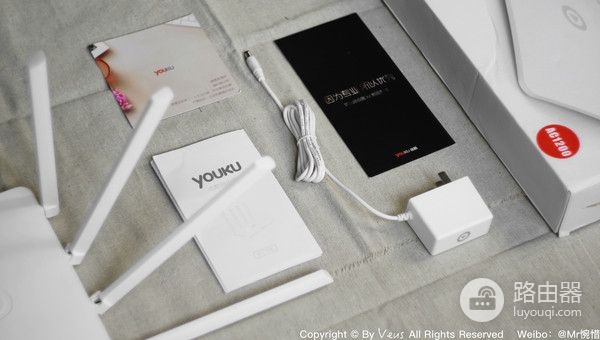 优酷x2 在产品外形上和包装保持高度一致的简洁,配件也很简单,电源插头、说明书、感谢卡还有一个不知道有什么用的方形卡片。没有配送网线,但是作为路由器的商品在卖出时没有配送网线多少显得有点诚意不足,毕竟用你们的话说,网线才几个钱。