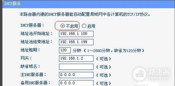 6、最后关闭DHCP服务器。在DHCP服务器中,选择“不启用”,然后点保存,重启路由器。