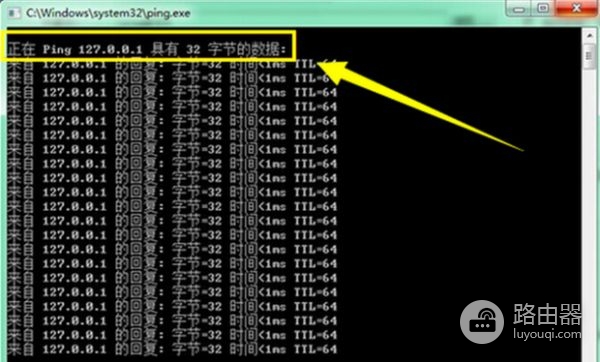 5、如果想查看自己是否安装了TCP/IP协议可以输入ping 127.0.0.1进行测试
