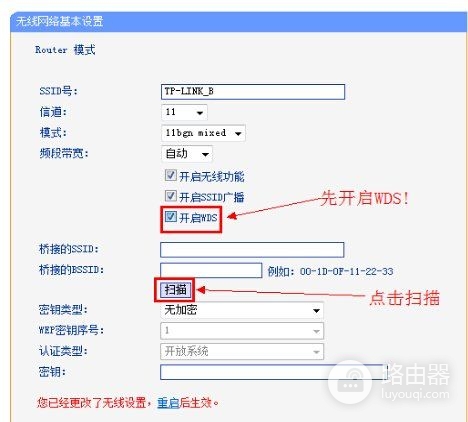 1、修改无线参数并开启WDS扫描信号