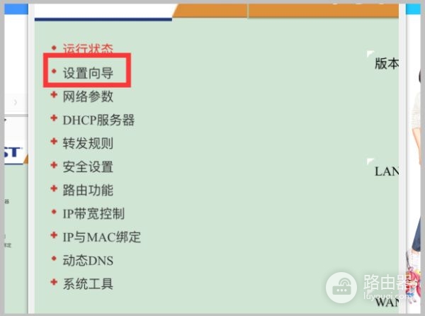 7、进入设置页面中先找到路由器设置向导,