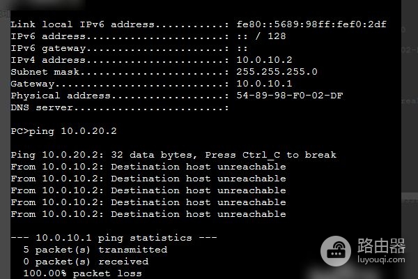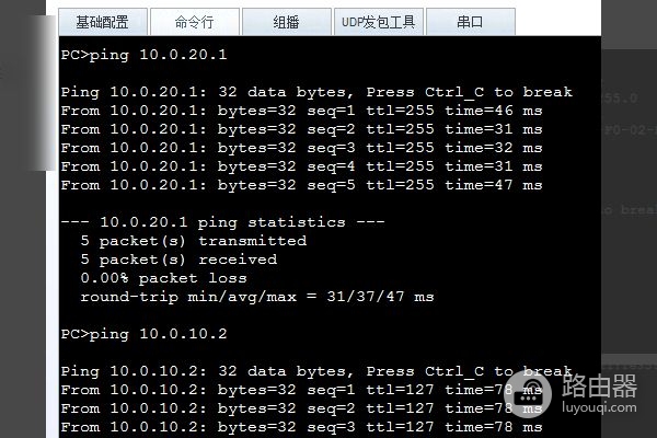 5、当配置完成后,可以分别在PC1和PC2检查相互之间可以进行通信。