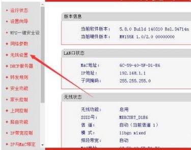 4、进入路由器之后,点击无线设置进入无线设置页面。