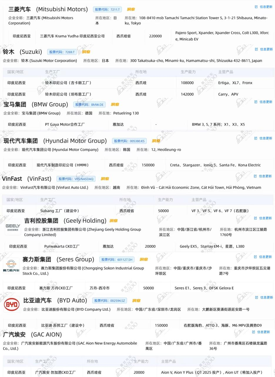 此外,中爪哇和东爪哇地区也有部分汽车及零部件企业布局,虽然规模相对较小,但在产业配套和区域协同方面发挥了补充作用,共同推动印尼汽车产业体系的完善与升级。