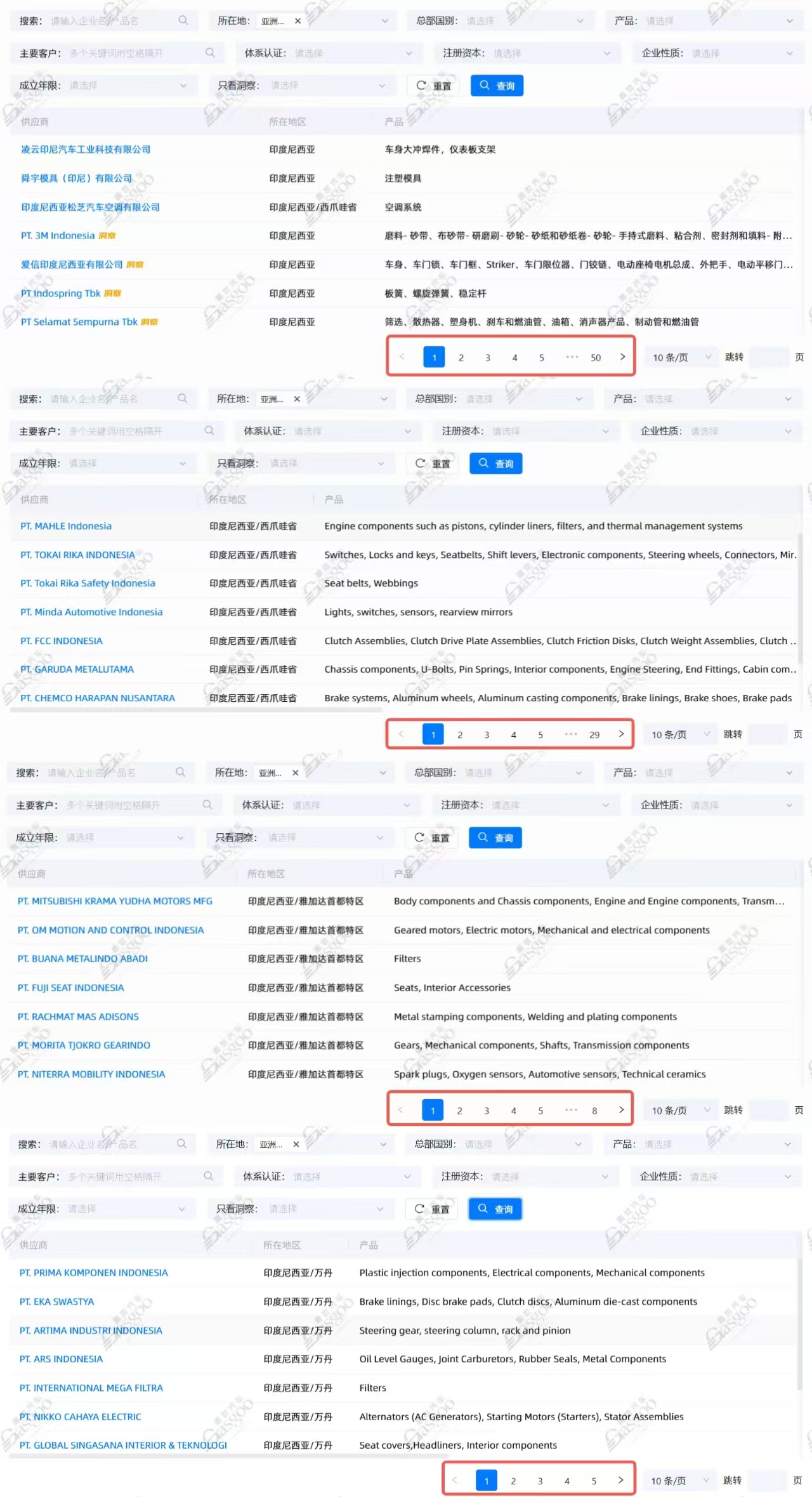 印尼汽车零部件供应商布局呈现出明显的区域聚集与国际品牌主导特点,不同工业区汇聚了来自日本、美国、德国、法国、韩国、瑞典等国以及本土的企业,供应着多样的汽车零部件产品: