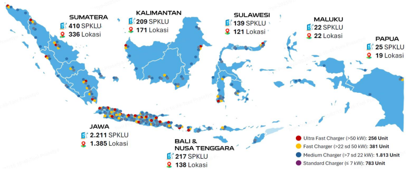 在发展新能源汽车的同时,印尼的充电设施网络正在逐步完善,但仍是市场发展的瓶颈。截至2024年12月,印度尼西亚共有2,192个地点,共计3,233个电动汽车充电桩。虽其公共充电站(SPKLU)数量正在增加,但主要分布在雅加达、万隆等主要城市和高速公路沿线,充电桩的数量、分布密度和覆盖范围仍有待提高。对此,印尼政府正在努力统一充电接口标准,以提高兼容性和用户便利性。同时,印尼国家电力公司(PLN)计划2025年将充电桩数量提升至6,278个,逐步缓解设施短板。