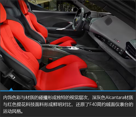 法拉利SC40作为品牌在致敬经典与电动化转型背景下的重要作品,其通过将F40的复古基因与296 GTB的混动技术相结合,展现了超跑品牌对历史传承与技术创新的平衡探索,也为高端定制汽车市场树立了新的参考范本,成为一件兼具性能与艺术价值的移动藏品。