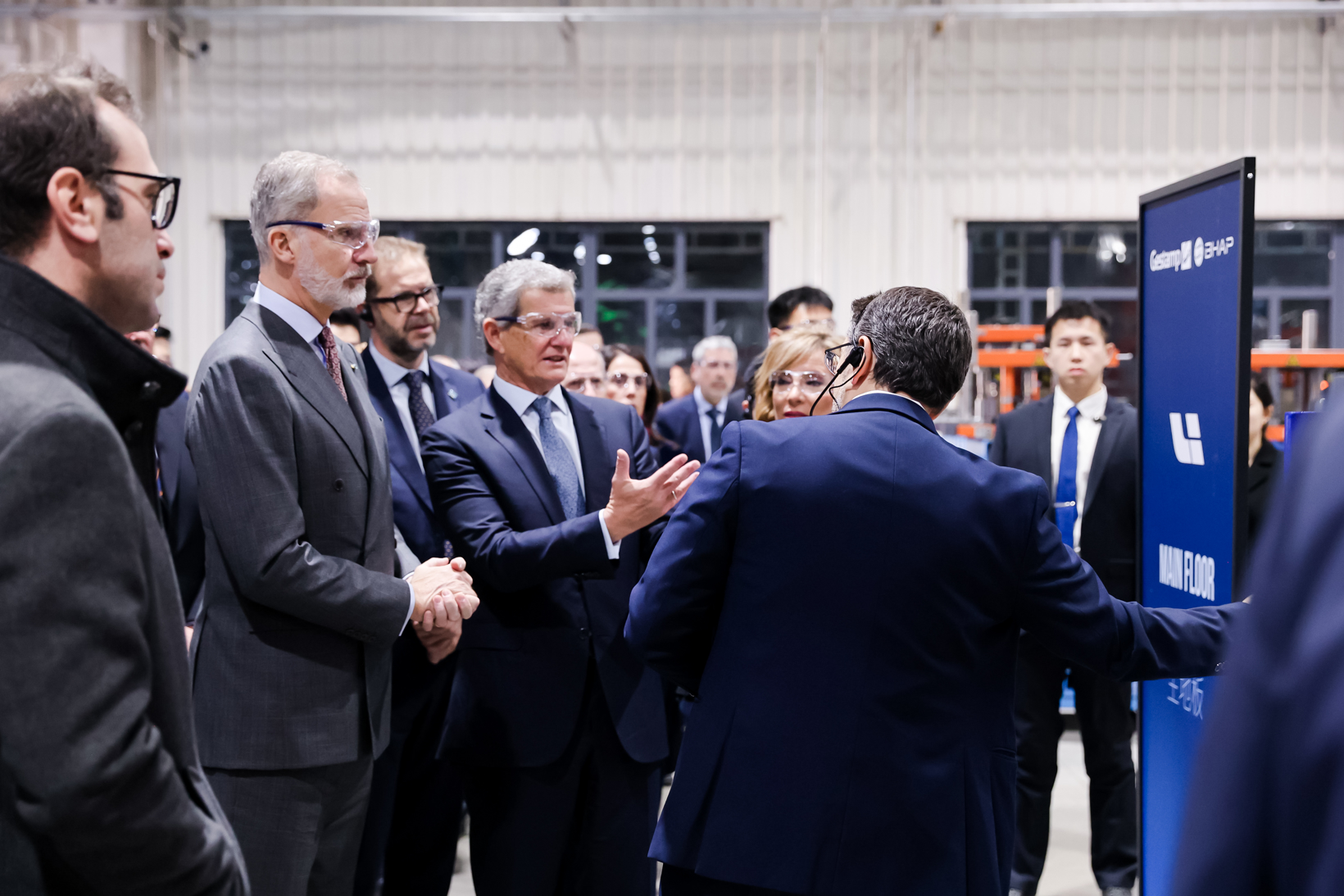 在海斯坦普执行主席弗朗西斯科·里贝拉斯(Francisco J. Riberas)的陪同下,费利佩国王深入考察了工厂生产实力与技术,详细了解了其为北京奔驰、理想汽车及小米汽车等主机厂生产汽车组装部件与电池壳体相关情况。