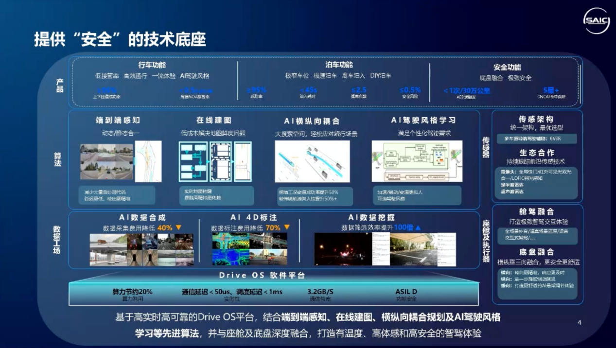 之外,上汽旗下的零束科技公司已成功研发新一代电气架构,并打造了应用于MG4车型的驾驶辅助域控制器计算平台。该平台采用全栈自主开发模式,我们开发了Drive OS系统,实现全链路贯通。通过该系统,我们能够打通整个数据链条,推动算法迭代升级,并持续优化产品,为客户提供更优质的体验。除了技术底座,我们还将产品定义聚焦于高速驾驶与泊车两大场景。