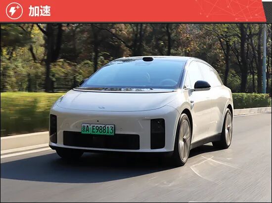 评测车搭载双电机四驱系统,拥有4.5秒破百的加速实力。实际驾驶过程中,加速踏板调校力度适中,电机响应基本没有延迟,动力输出充沛。前中段加速线性,高速再加速能力突出,兼顾舒适性与运动性。