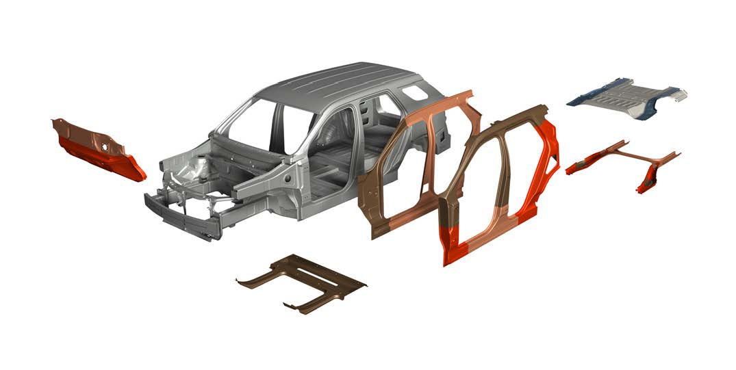 白车身的开发是一项复杂的系统工程。VAMA则能够从全局出发,为其每个部位匹配最适宜的材料:例如,在需要极高强度的区域采用Usibor®系列,在要求高效吸能的部位使用Ductibor®系列,并结合先进的冷成形钢完成功能补充。