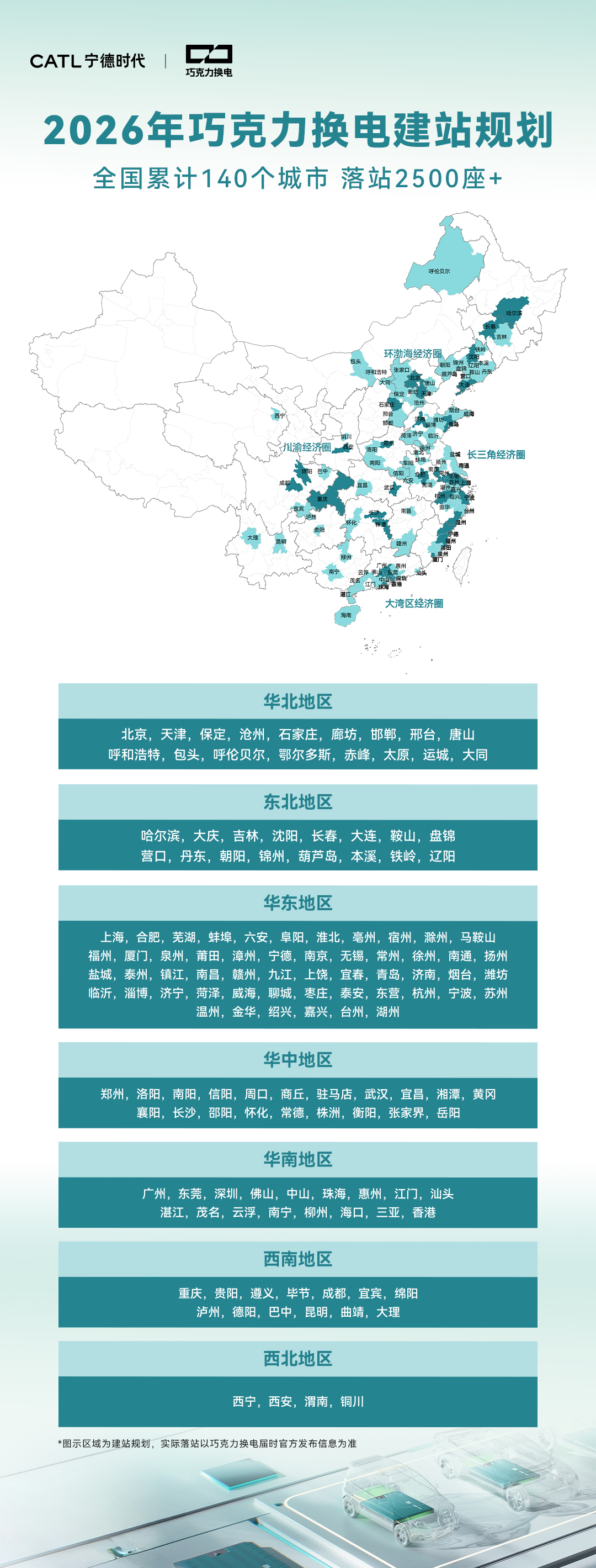 针对用户长途出行、跨城通勤等个性化需求,巧克力换电即将推出50元享1000公里的“里程增量包”,满足用户更丰富的出行场景需求。同时,2026年巧克力换电将启动高速公路换电站建设,首批优先布局长三角、珠三角、成渝、京津冀四大区域,切实解决用户跨城出行的补能痛点。