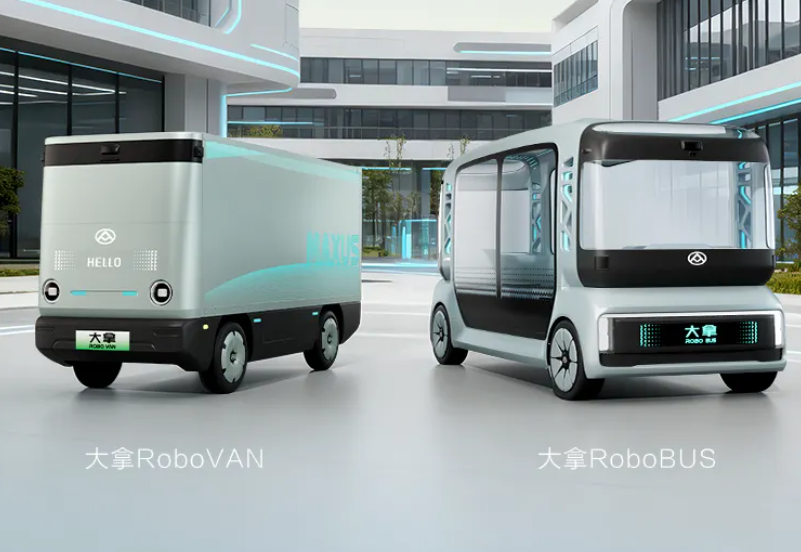 在本届广州车展上,大通正式发布全新的品牌标识“众辉标”,并首次公开旗下“大拿”无人客货双子星——RoboVAN 与RoboBUS。