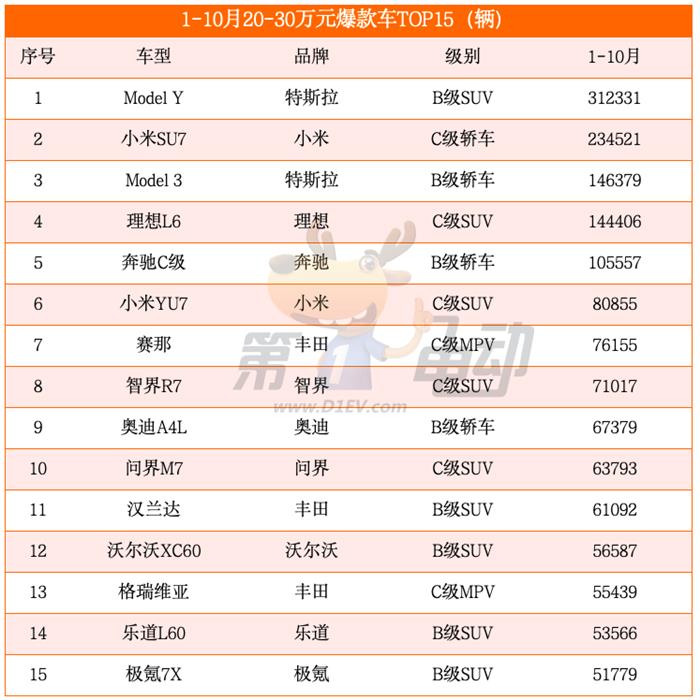 20-30万元级汽车市场作为主流消费核心战场,2025年1-10月呈现出颠覆性竞争格局。
