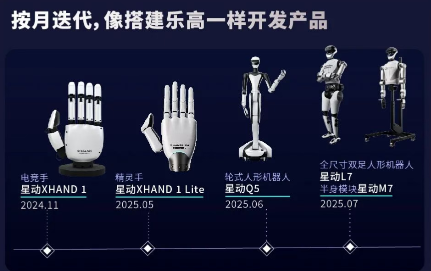 据此,星动纪元先后推出了“电竞手”星动XHAND 1、“精灵手”星动XHAND 1 Lite、轮式服务机器人星动Q5、面向工业领域的全尺寸双足人形机器人星动L7及其半身模块星动M7等,并已获得超5亿元订单,初步打通“技术-产品-商业化”闭环。
