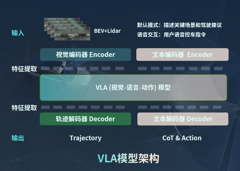 元戎启行的DeepRoute IO 2.0则通过VLA(视觉–语言–动作)模型构建了另一种发展路径,让车辆真正“看得懂、听得懂、想得清”。VLA模型同时连接视觉信息、交通文字、语言指令和驾驶动作,使智驾系统具备完整的交通语义理解能力。从异形障碍物识别,到潮汐车道等文字提示解析,再到自然语言控车,系统更像一个具备交通常识的智能驾驶助手。更重要的是,VLA引入Chain-of-Thought思维链,让车辆的决策过程可逐步展示,大幅提升系统透明度与用户信任。其“防御性驾驶”策略强化了长时序推理与安全冗余。随着2025年底超过20万辆量产车搭载其方案,元戎启行正推动智驾迈向具有认知和语义理解的新阶段。