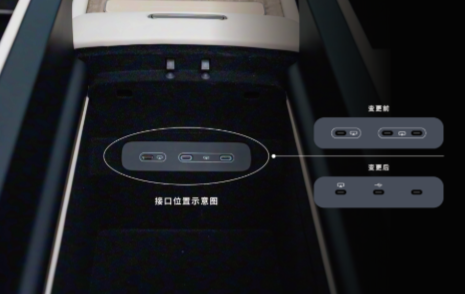 此外,针对用户的问题,官方也做出回答。其中,针对“我如何知道自己的车是否采用了新技术方案?”的疑问。蔚来官方称,采用新技术方案的车辆,前排扶手箱内USB-C口外观存在差异(如下图),若您提车前需要知道爱车是否采用新技术方案,可联系您的专属Fellow确认。