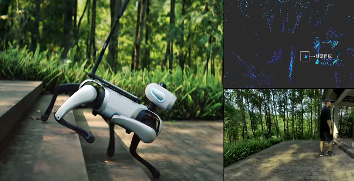 在发布会现场演示中,面对落满落叶、树木丛生的小径,大头BoBo均能够较好地识别可通行区域,稳定跟随目标,并在目标被树干短暂遮挡后重新锁定。不仅如此,大头BoBo还能响应“去咖啡厅”的指令,自主导航并提醒“当心探路”。