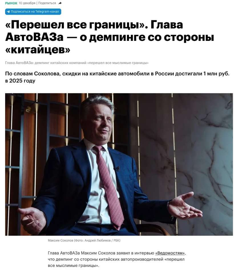 在俄罗斯,中国汽车份额日益提升,也让当地不安。俄罗斯奥托瓦兹公司负责人公开称,中国车型单车折扣高达100万卢布(约合8.8万元人民币),指责中国车企在俄进行大规模倾销,称中国车企的折扣行为“已超越可以想象的合理界限”。