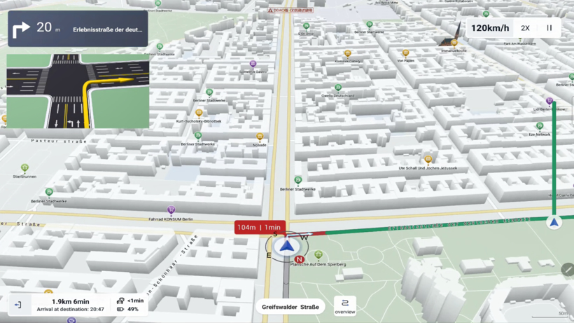 美行科技面向推出的全球导航解决方案,以标准化、平台化和模块化为核心设计思路,基于标准NDS数据构建统一的全球导航引擎,在继承全球导航体系规范的同时,融合国内导航在功能深度与体验层面的成熟能力。该方案通过“9 in 1”产品体系,将混合导航、惯性导航(DR)、电子地平线(EHP)、车道级导航、AR导航等能力进行模块化集成,并支持按需独立部署,能够以一套技术框架适配不同区域的法规与使用场景。在能力层面,方案重点强化复杂场景下的连续定位、车道级决策支持与语义化表达,通过高性能渲染引擎和标准接口实现与车端系统的深度协同,兼顾功能稳定性与体验一致性;在应用层面,则覆盖电动车补能规划、城市与停车场精细导航等多维出行场景,为车企提供可规模化落地、可持续演进的全球导航基础能力。