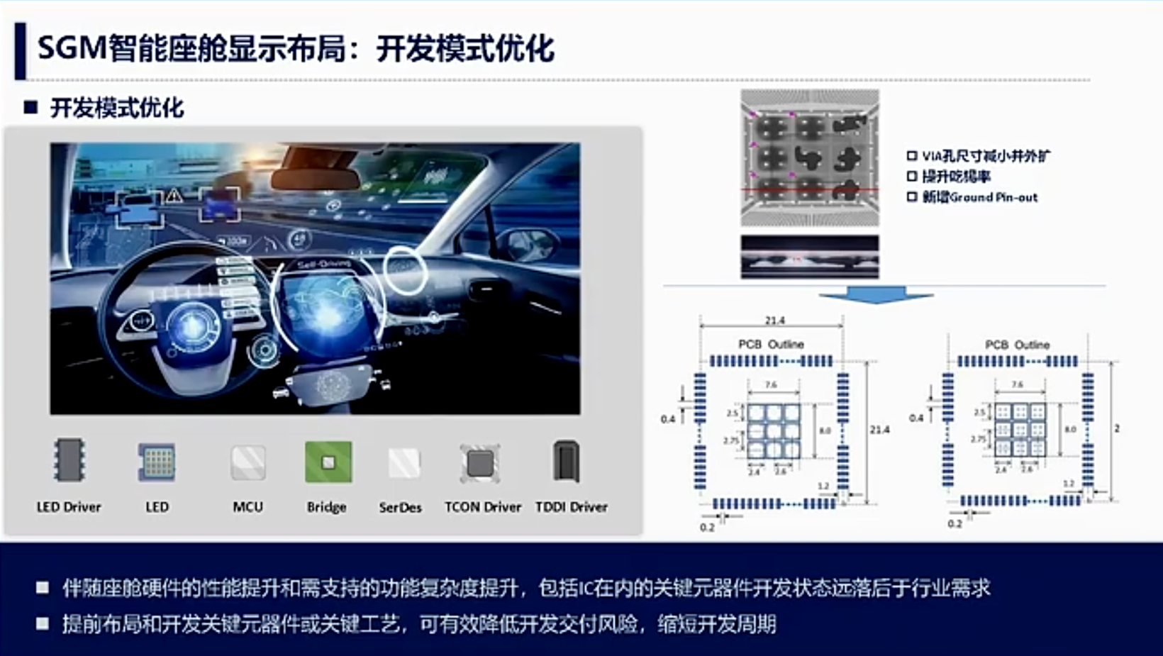 朱晓钦还分享了泛亚汽车在产品开发中的平台化与差异化策略,包括硬件平台化开发以减少软件投入,以及对显示产品的差异化处理,如反射率、色点范围的控制。朱晓钦还介绍了Direct-Buy开发模式的应用,通过直接与上游供应商沟通提升效率与成本控制,并强调新应用材料或元器件的产品级验证重要性。