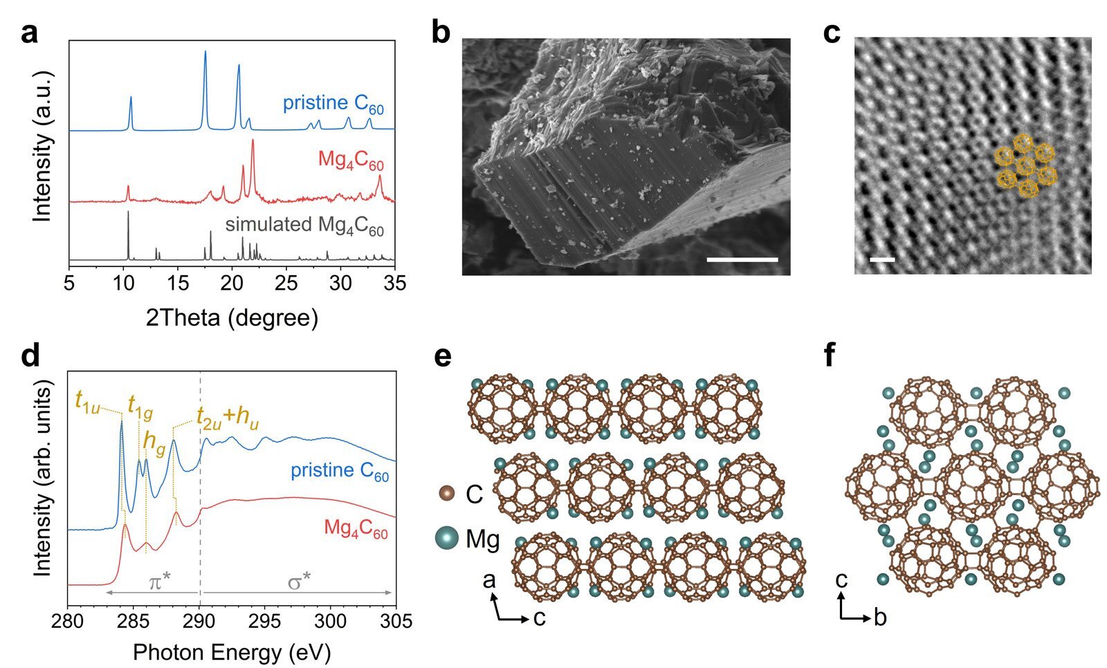据外媒报道,日本东北大学(Tohoku University)的研究团队开发了一种共价桥联的富勒烯骨架(Mg4C60),该骨架表明碳可以以一种完全不同且更加稳定的方式储存锂,从而避免结构坍塌,防止活性物质的损失——而活性物质的损失长期以来一直是制约富勒烯负极应用的关键因素。相关研究论文发表在期刊《Journal of the American Chemical Society》上。