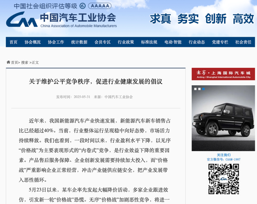 2025年全国两会上,首次将“综合整治‘内卷式’竞争”写入《2025 年国务院政府工作报告》,足见我国对重塑汽车产业健康发展的重视和决心。