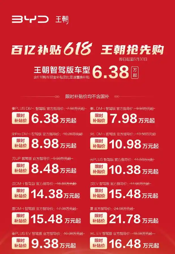 作为无序竞争的首要问题,任何触及红线的价格战行为都会引发主管部门极大关注。5月16日,国家市场监督管理总局党组书记、局长罗文刚在人民日报刊发文章《综合整治“内卷式”竞争 维护公平竞争市场秩序》,提出要依法查处不正当竞争和价格违法行为。5月23日,比亚迪就率先打响2025年力度最大的一场价格战,宣布推出限时一口价或限时补贴促销,涉及王朝网、海洋网共计22款智驾版车型最高补贴达5.3万元,时间自5月23日至6月30日,让其余车企只得跟随,降价车型达百余款之多。