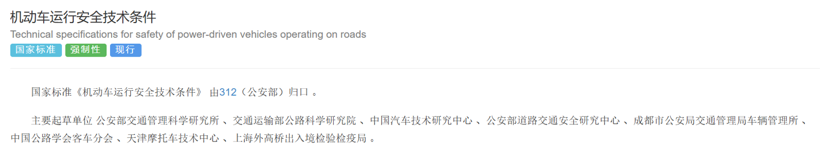 八、《机动车运行安全技术条件》(GB 7258)修订(征求意见稿)